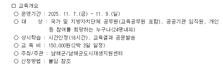 「2025 남해군 보물섬 곰탁곰탁 아카데미 1기」 모집 안내