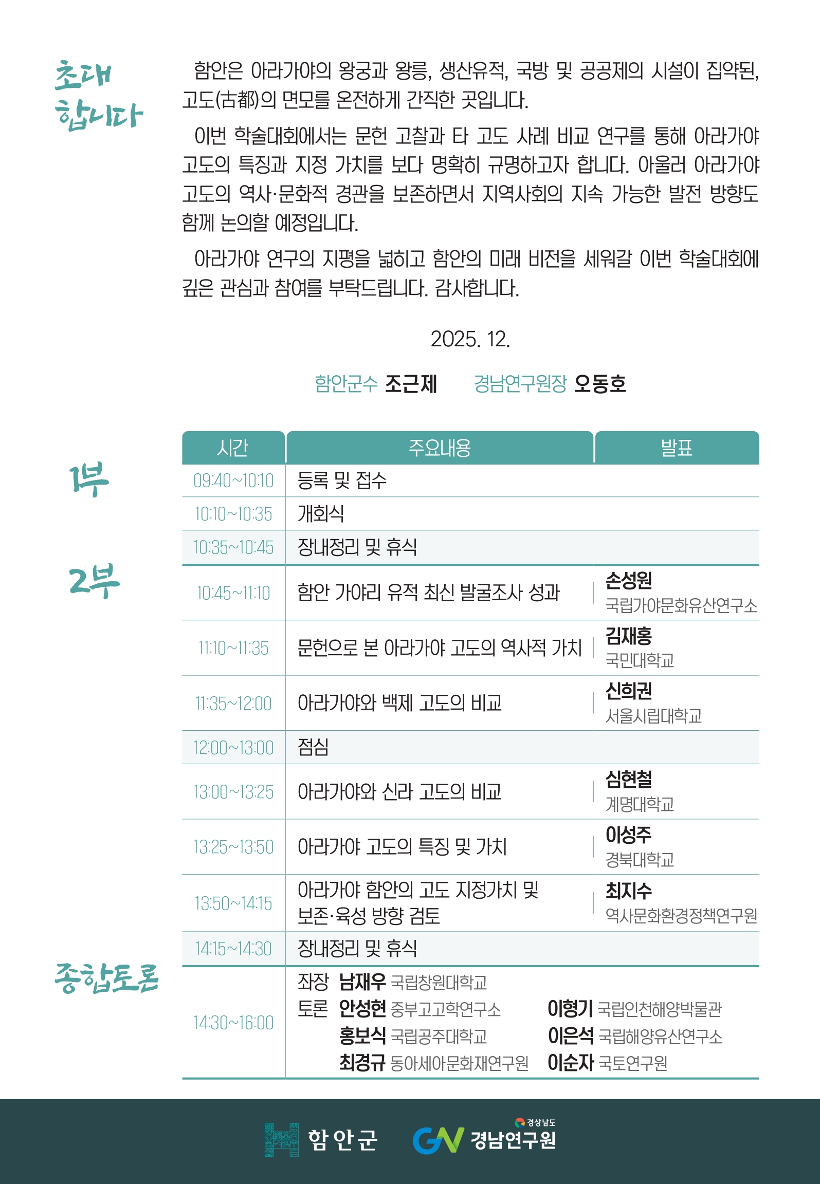 「아라가야 고도의 공간과 가치」학술대회 개최 알림
